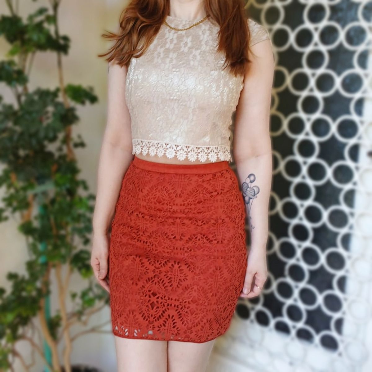 minissaia terracota de suede com recortes geométricos frontais. possui forro e zíper invisível. modelo com cintura alta.
